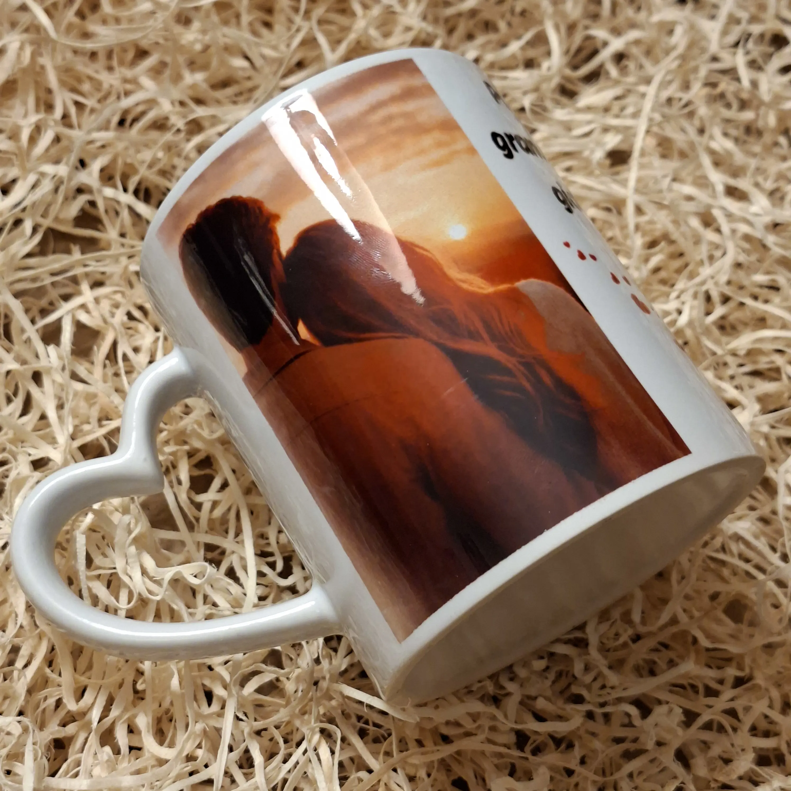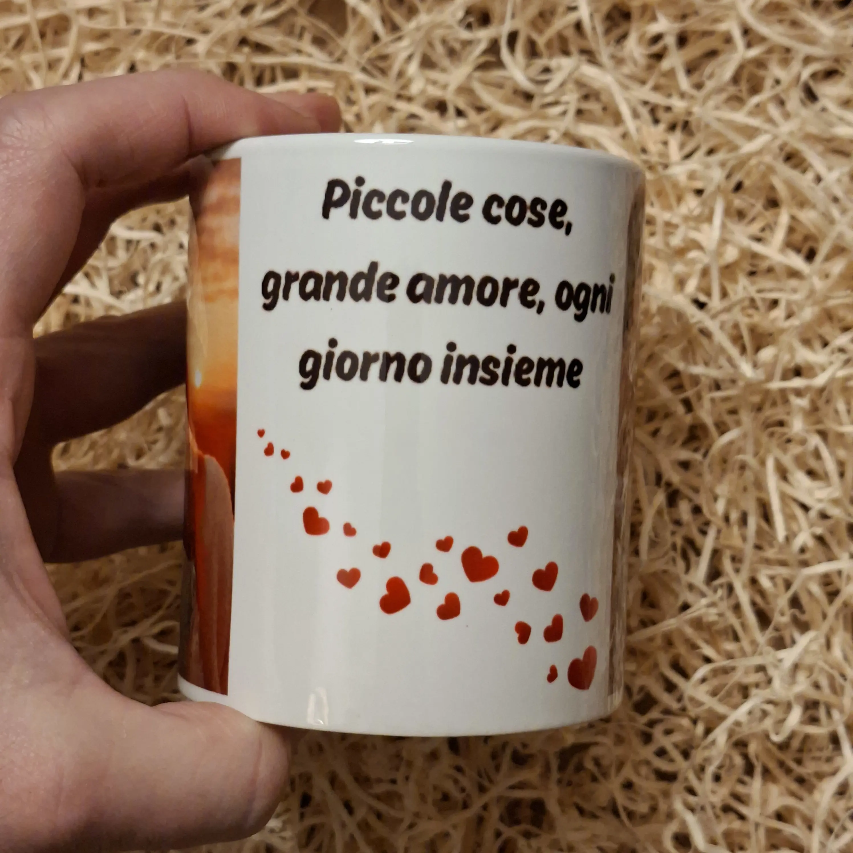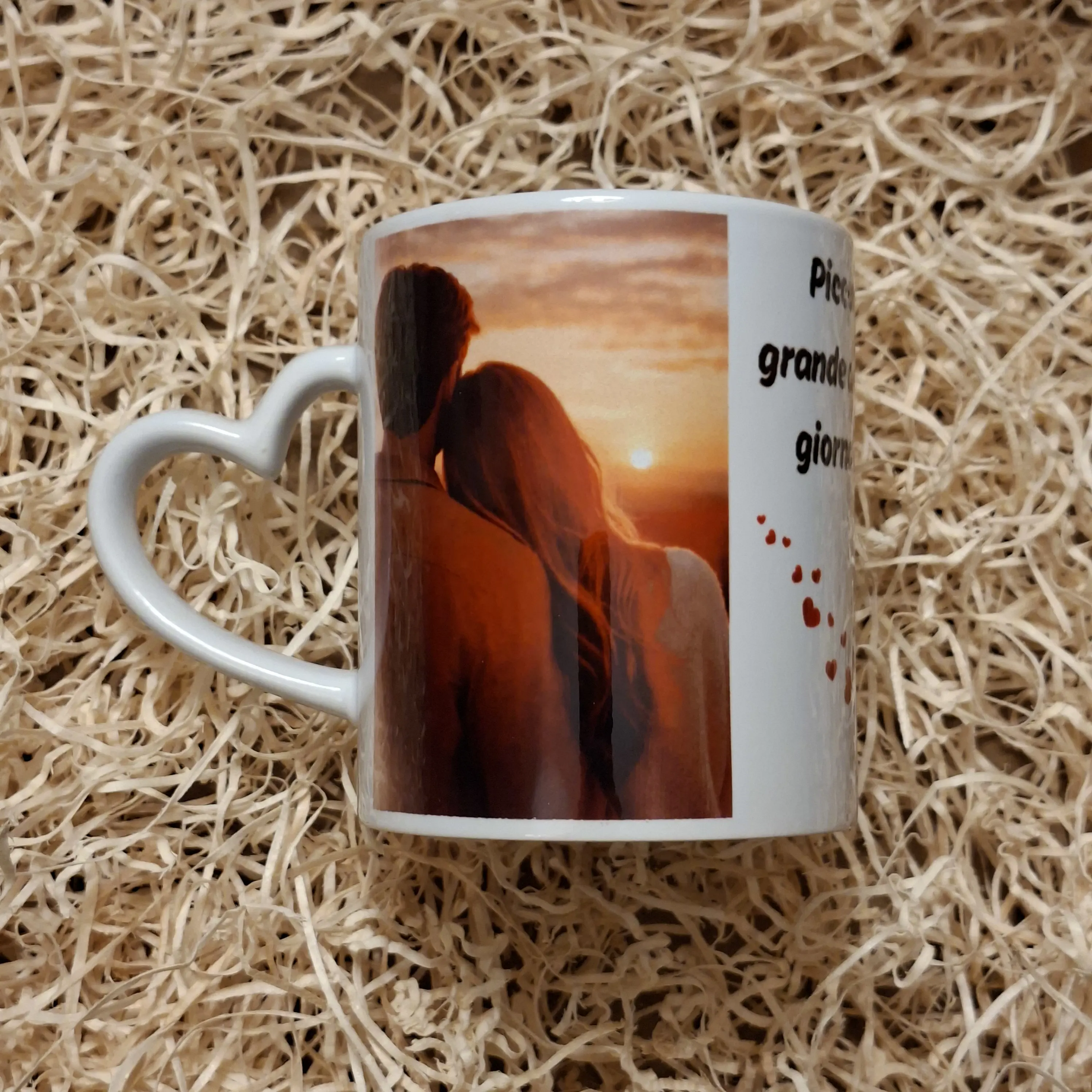 Tazza personalizzata con foto e frase romantica.