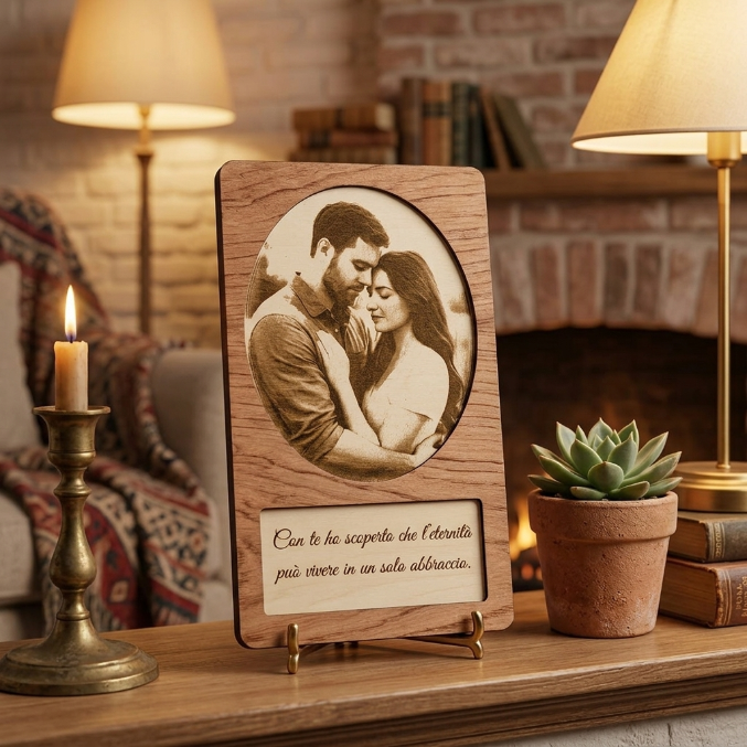 Trasforma un ricordo speciale in un oggetto unico. L’immagine viene impressa direttamente sul legno naturale, creando un effetto materico e caldo che durerà per sempre.