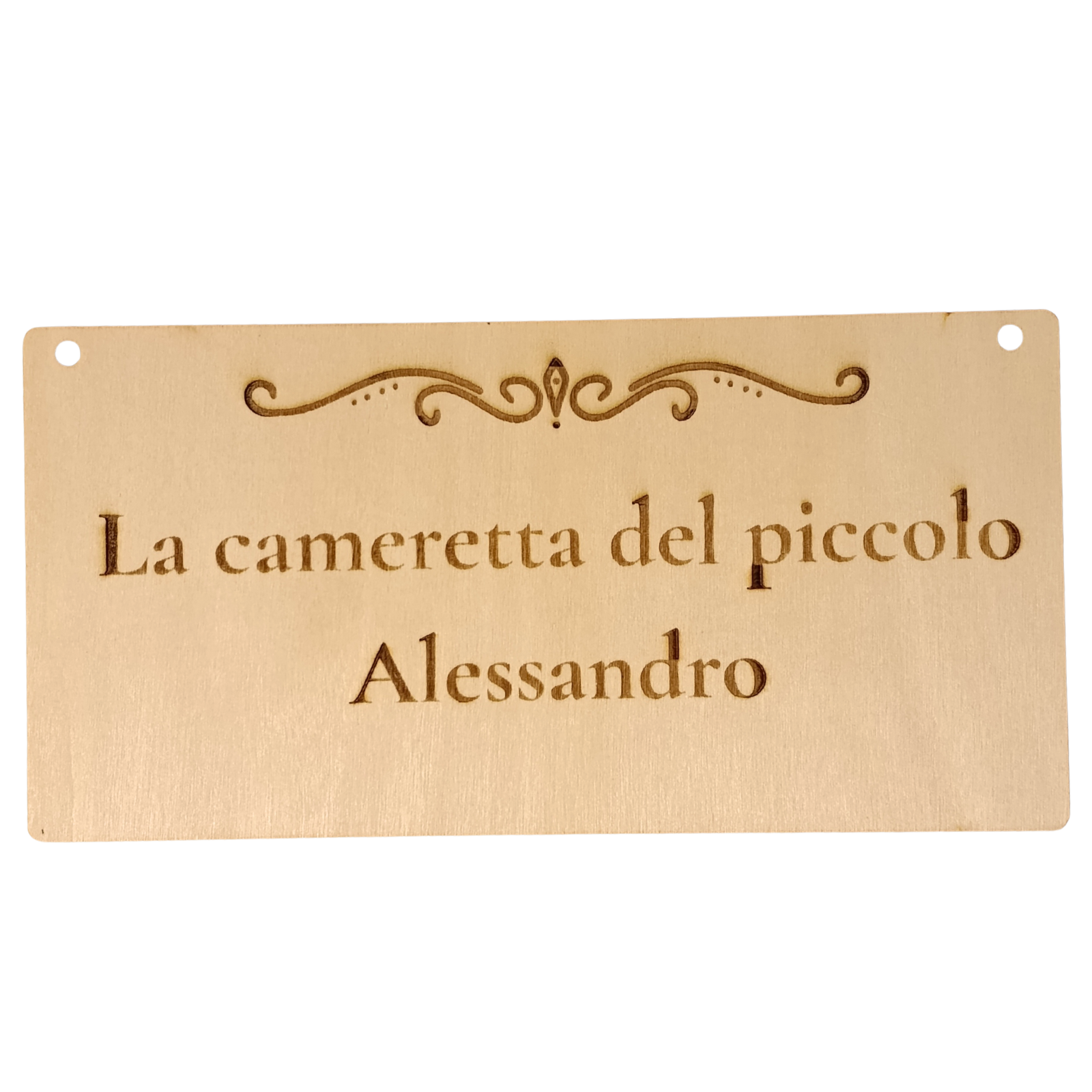 Targhetta di legno compensato di spessore 2mm con cordino incluso personalizzabile con del testo.