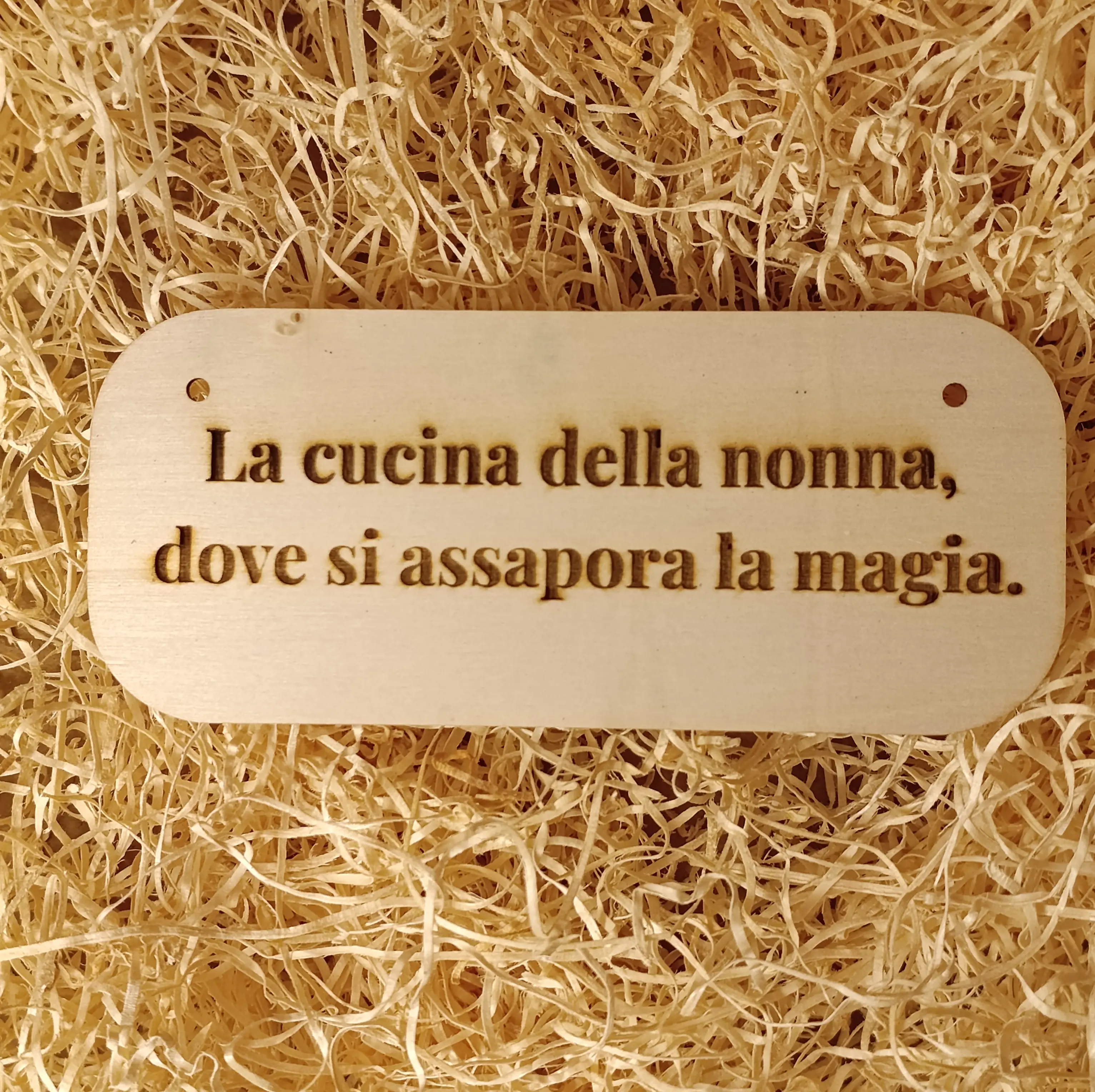 Targhetta di legno compensato di spessore 2mm con cordino incluso personalizzabile con del testo.