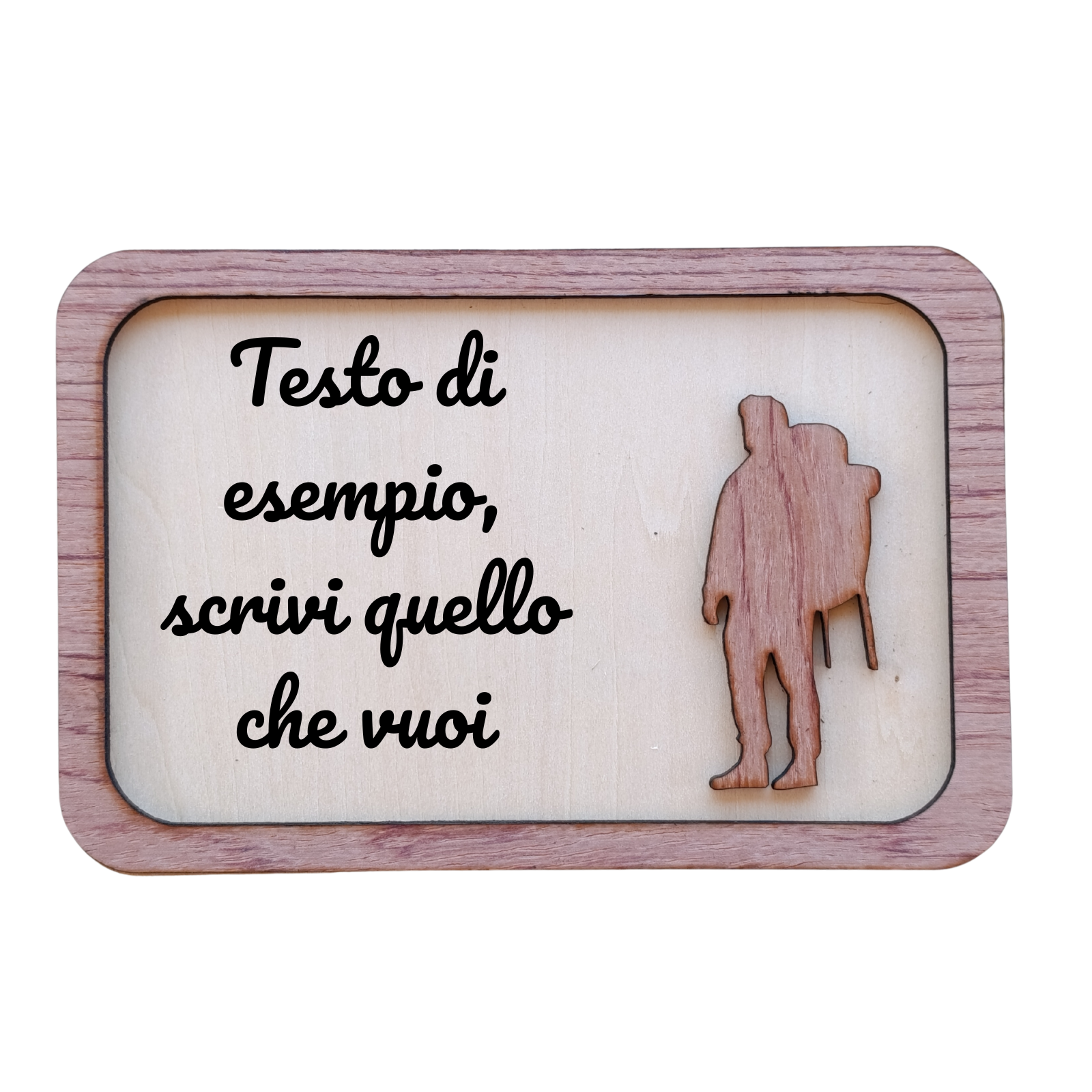 Il prodotto è personalizzabile con del testo e selezionando il colore della superfice superiore.
