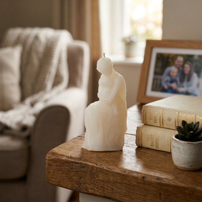 Una candela artigianale che cattura la purezza del legame materno. È il regalo ideale come segno di buon auspicio o per aggiungere un tocco di dolcezza e calore a qualsiasi ambiente della casa.