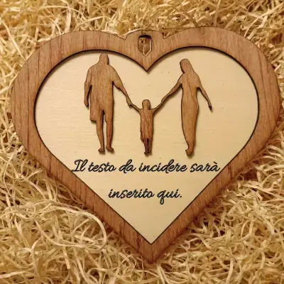 Un simbolo d'unione artigianale. Questa targa a forma di cuore, completa di cordino in juta, celebra il valore della famiglia con eleganza e semplicità.